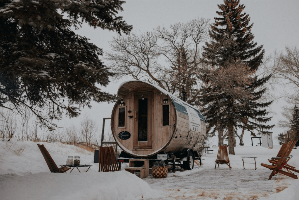 Following your Sled Dog Adventure, you’ll make your way to the sauna and meet Kyla, your Sauna Host. She will walk you through the Nordic Cycle of Hot-Cold-Rest-Repeat while you bask in relaxation and unwind in our wood-burning barrel sauna.